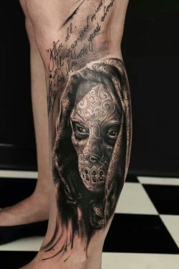 推荐一款个性经典的小腿死神纹身图案_腿部纹身图案大全_纹身图吧