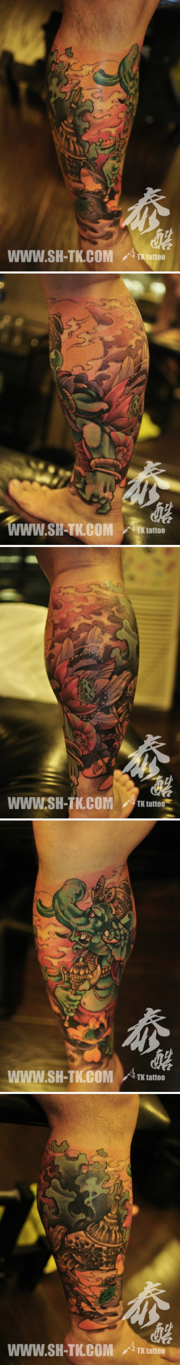 腿部时尚很酷的彩色象神纹身图案_腿部纹身图案大全_纹身图吧