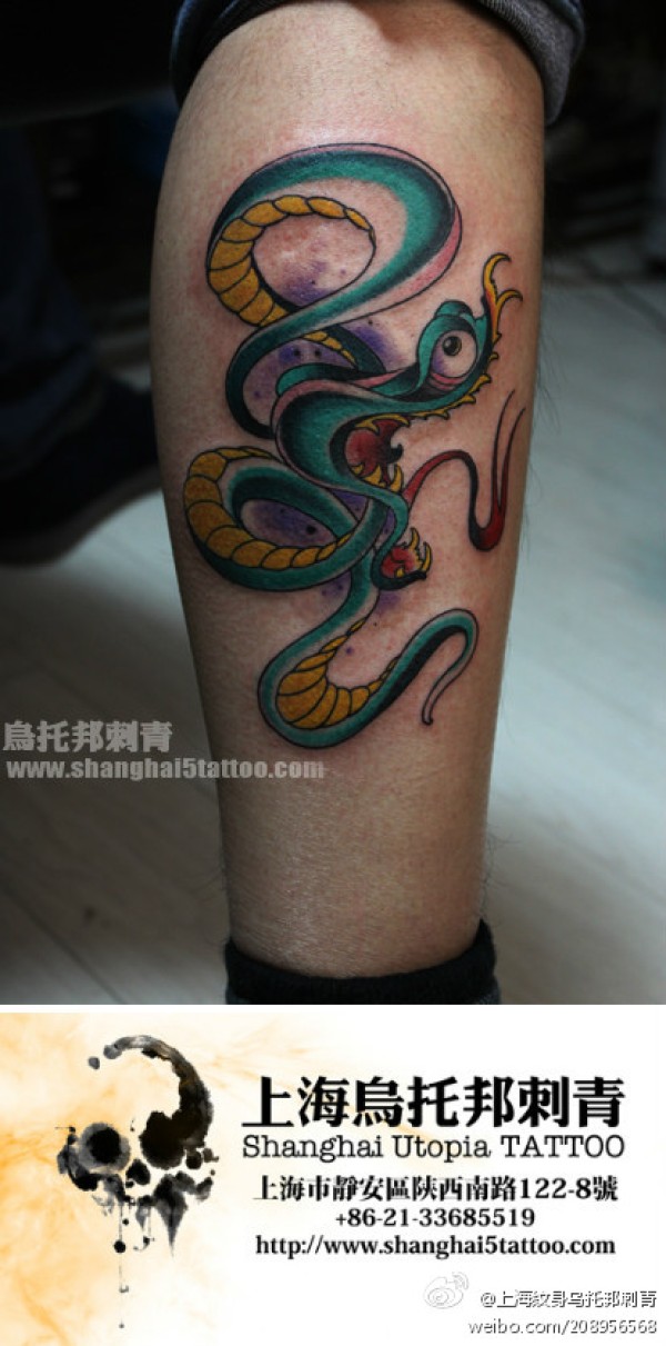 腿部时尚帅气的彩色蛇纹身图案_腿部纹身图案大全_纹身图吧