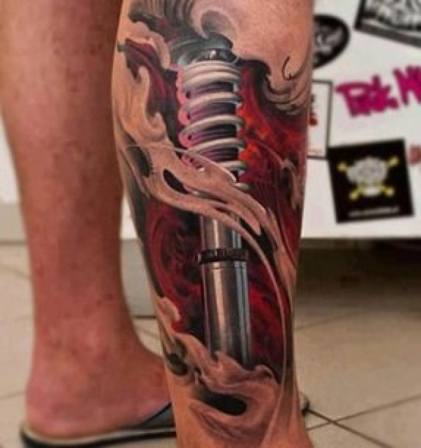 分享一魁岸超霸气潮流的小腿机械纹身图案_腿部纹身图案大全_纹身图吧