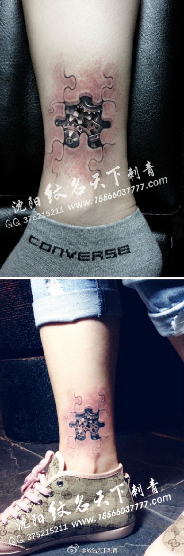 腿部潮流经典的机械纹身图案_腿部纹身图案大全_纹身图吧