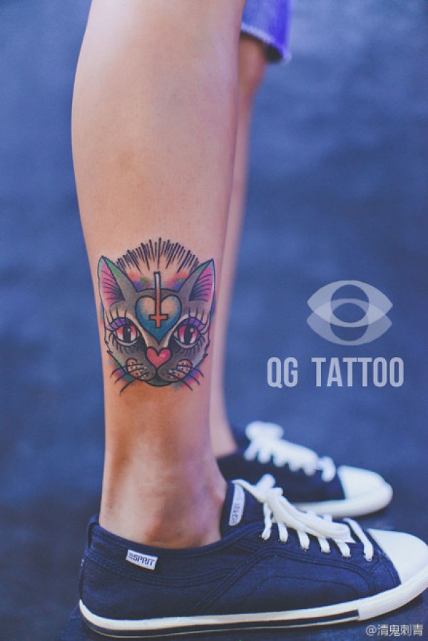 腿部可爱潮流的猫咪纹身图案_腿部纹身图案大全_纹身图吧