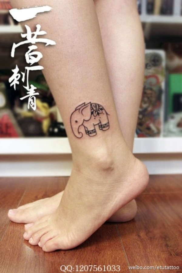女孩子腿部可爱潮流的小象纹身图案_腿部纹身图案大全_纹身图吧