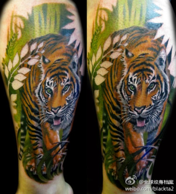 腿部很酷帅气的老虎纹身图案_腿部纹身图案大全_纹身图吧