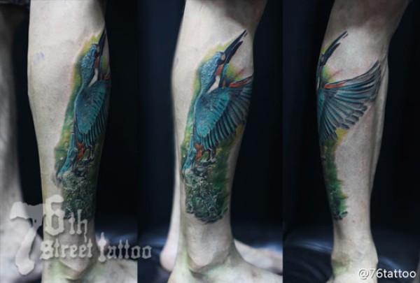 腿部精美时尚的彩色小鸟纹身图案_腿部纹身图案大全_纹身图吧