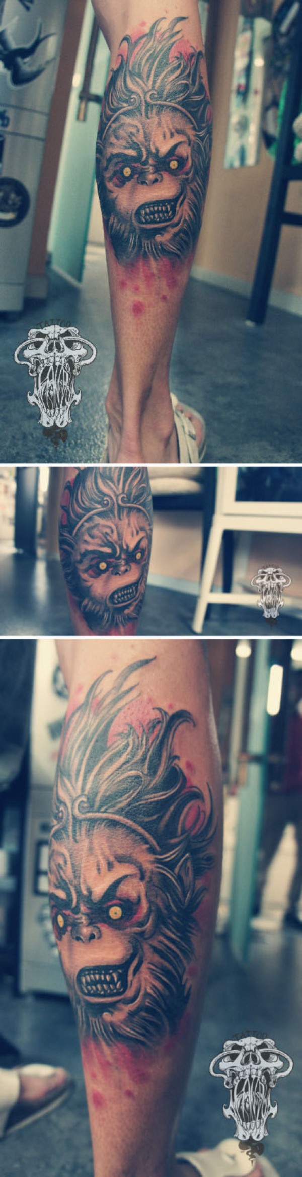 男生腿部很酷霸气的孙悟空纹身图案_腿部纹身图案大全_纹身图吧