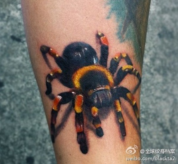 腿部潮流帅气的一款彩色蜘蛛纹身图案_腿部纹身图案大全_纹身图吧