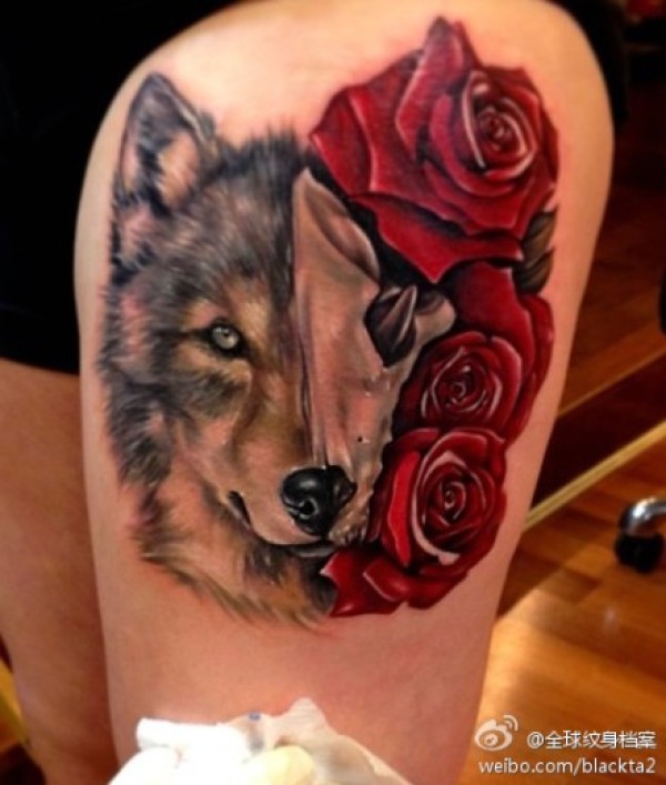 腿部经典潮流的狼头纹身图案_腿部纹身图案大全_纹身图吧