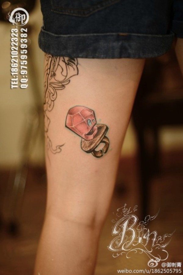 腿部一款时尚潮流的钻石戒指纹身图案_腿部纹身图案大全_纹身图吧