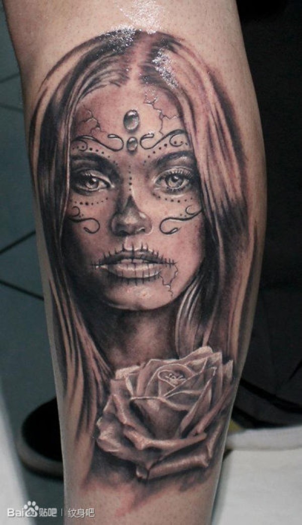 腿部潮流漂亮的亡灵装美女纹身图案_腿部纹身图案大全_纹身图吧