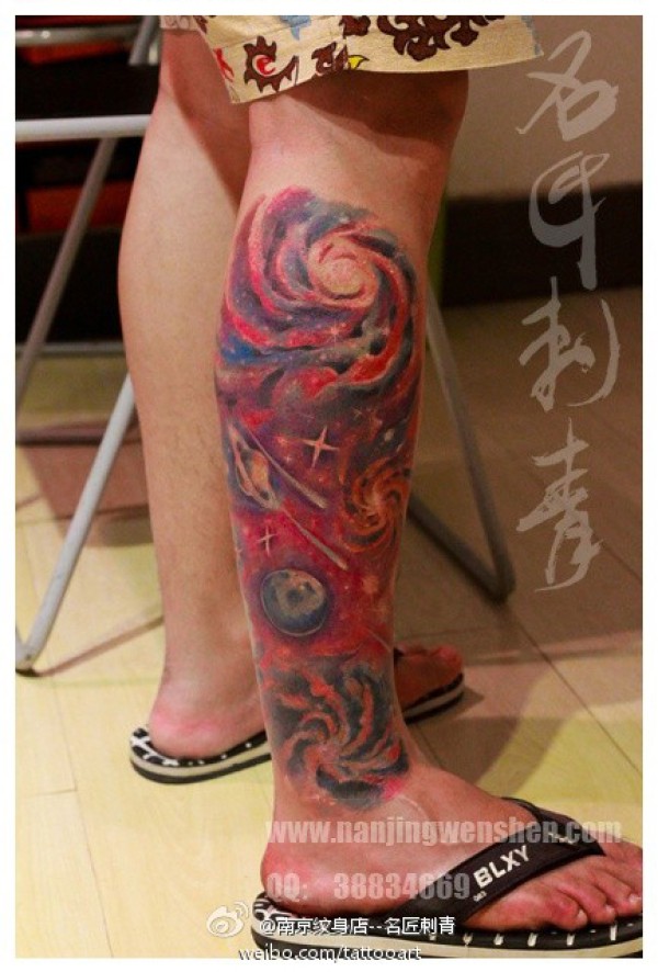 男生腿部时尚很酷的星空纹身图案_腿部纹身图案大全_纹身图吧