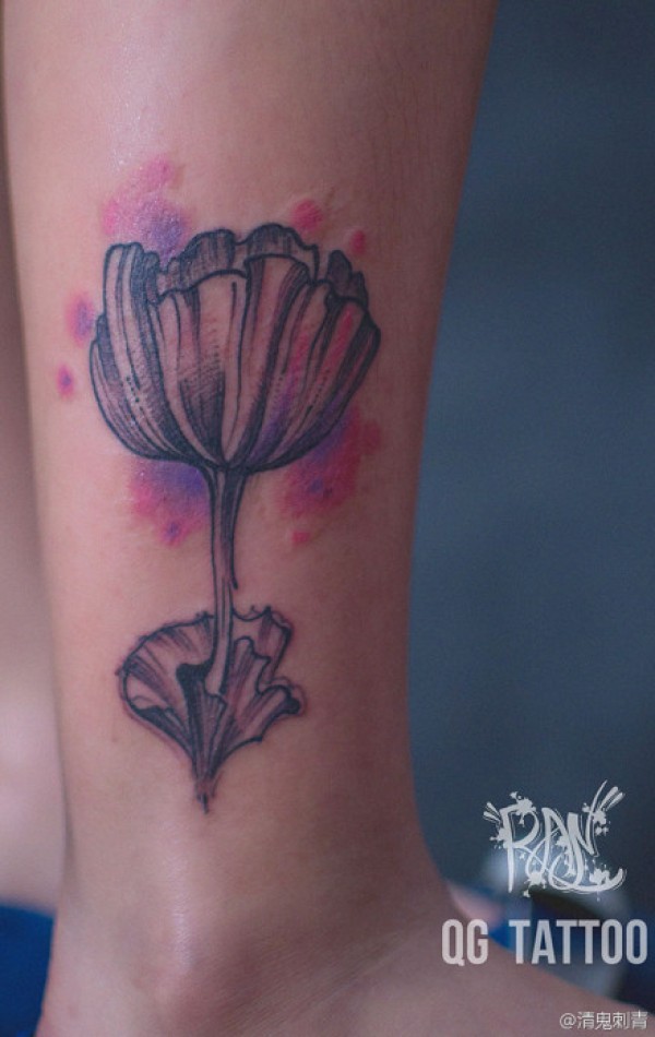 美女腿部唯美潮流的罂粟花纹身图案_腿部纹身图案大全_纹身图吧