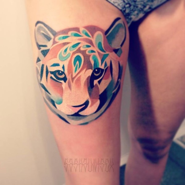 推荐一款超酷大腿老虎纹身图案_腿部纹身图案大全_纹身图吧
