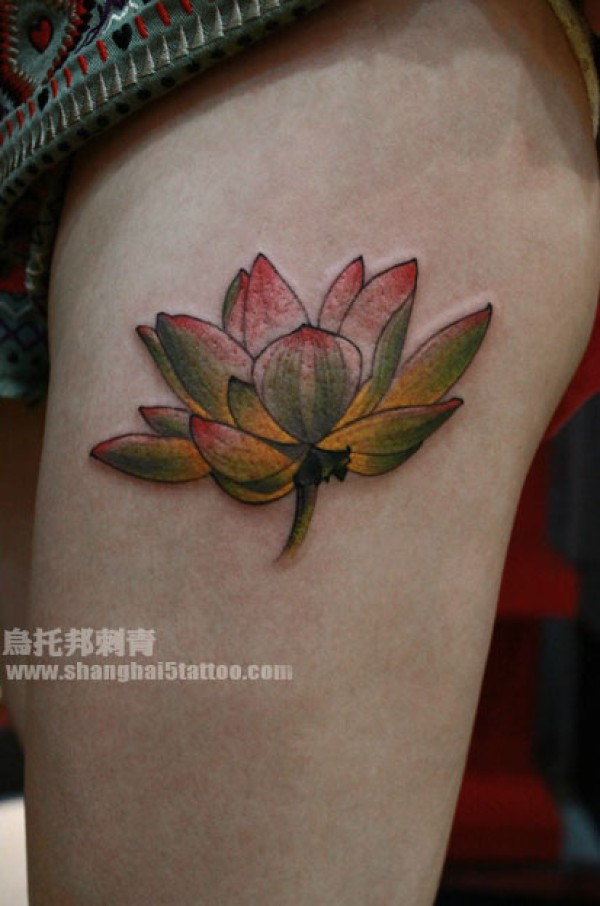 美女腿部唯美潮流的彩色莲花纹身图案_腿部纹身图案大全_纹身图吧