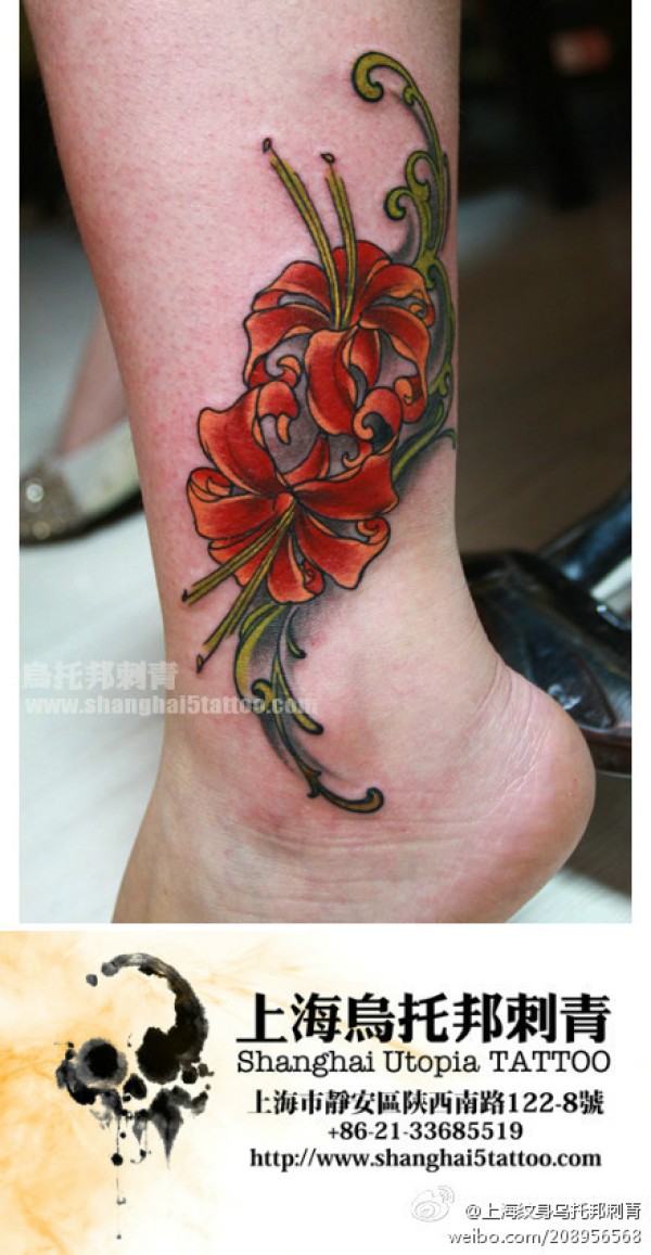 美女小腿时尚潮流的彼岸花纹身图案_腿部纹身图案大全_纹身图吧