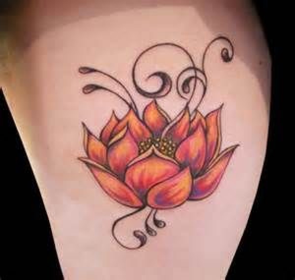 分享一款美女大腿莲花纹身图案_腿部纹身图案大全_纹身图吧