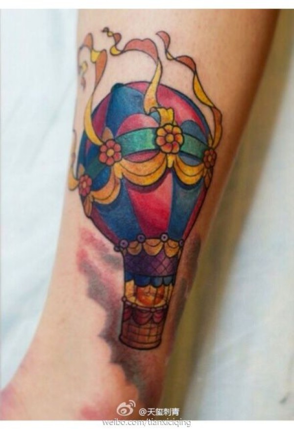 腿部潮流时尚的热气球纹身图案_腿部纹身图案大全_纹身图吧