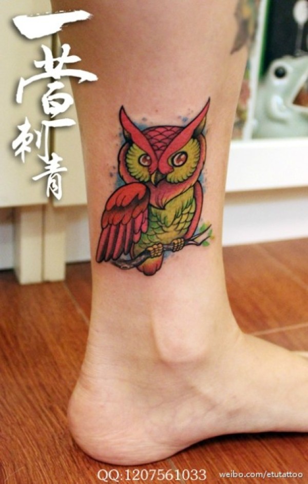 腿部可爱时尚的猫头鹰纹身图案_腿部纹身图案大全_纹身图吧