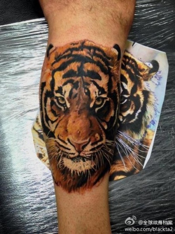 男人腿部超酷时尚的虎头纹身图案_腿部纹身图案大全_纹身图吧
