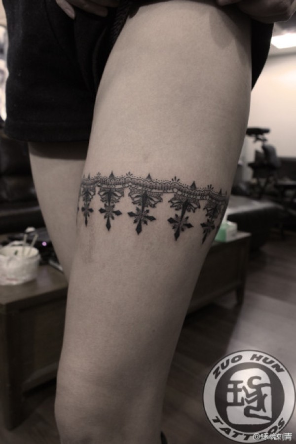 美女腿部蕾丝纹身图案_腿部纹身图案大全_纹身图吧
