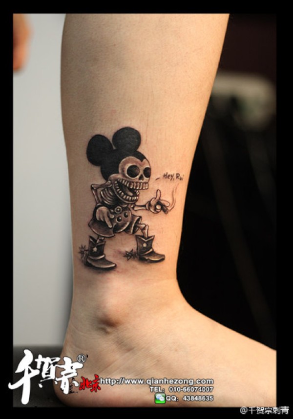 腿部潮流另类的米老鼠纹身图案_腿部纹身图案大全_纹身图吧