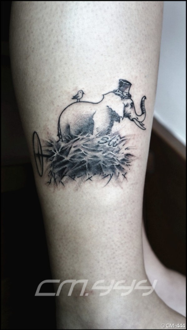 腿部潮流时尚的一款大象纹身图案_腿部纹身图案大全_纹身图吧