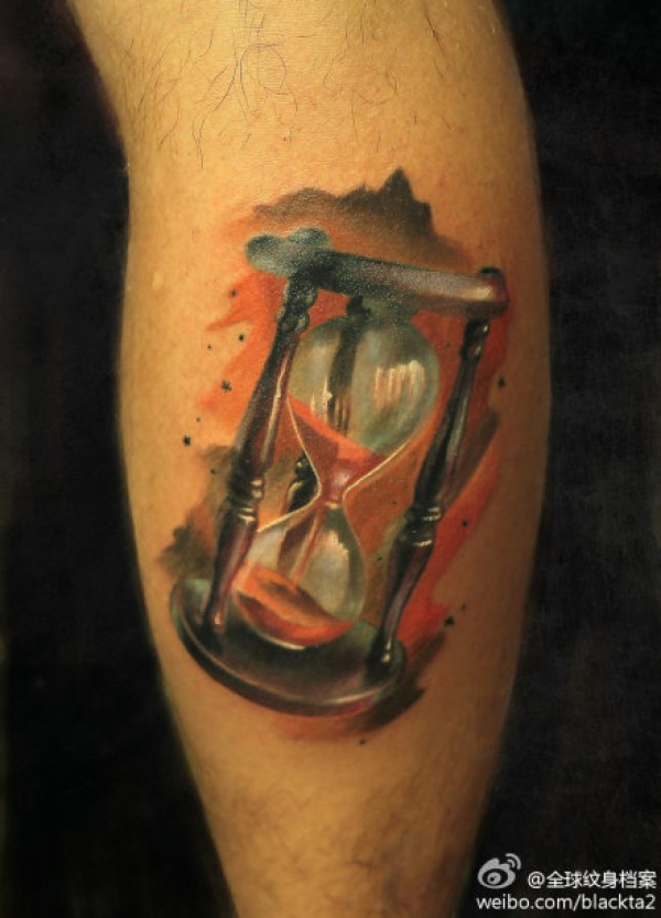 腿部潮流时尚的沙漏纹身图案_腿部纹身图案大全_纹身图吧