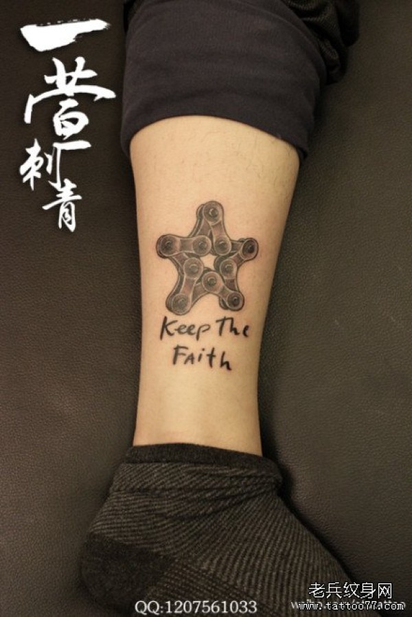 腿部一款经典的链条五角星纹身图案_腿部纹身图案大全_纹身图吧