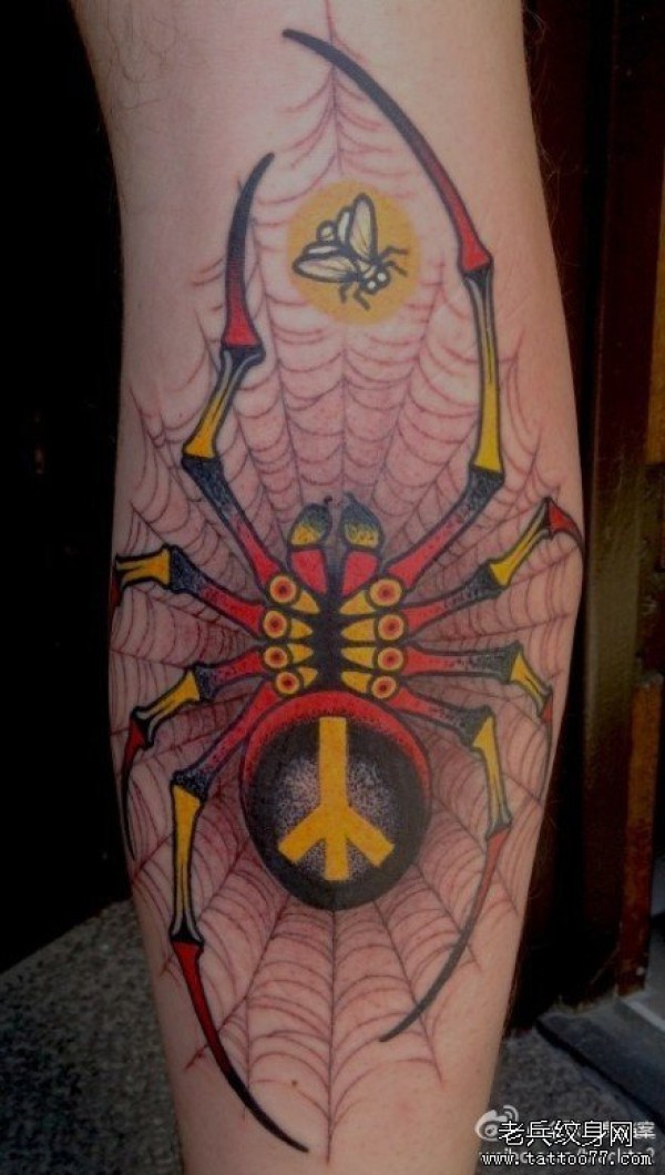 腿部经典很酷的蜘蛛纹身图案_腿部纹身图案大全_纹身图吧