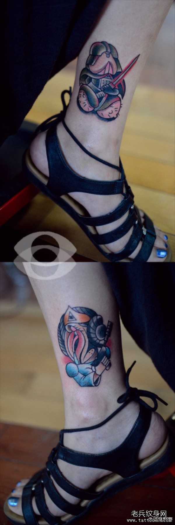 腿部彩色精灵纹身图_腿部纹身图案大全_纹身图吧