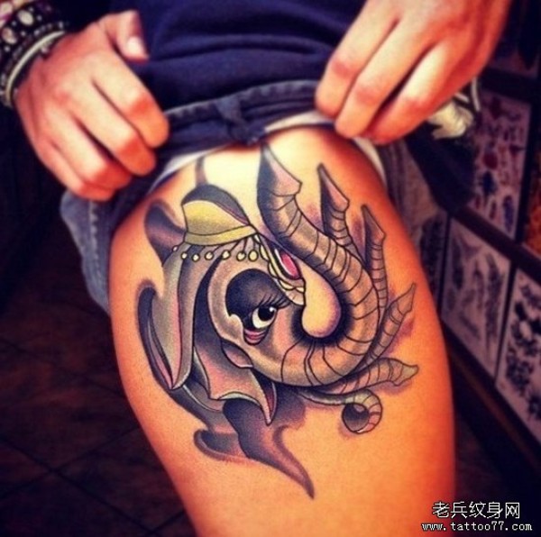 推荐一款大腿象神纹身图案_腿部纹身图案大全_纹身图吧