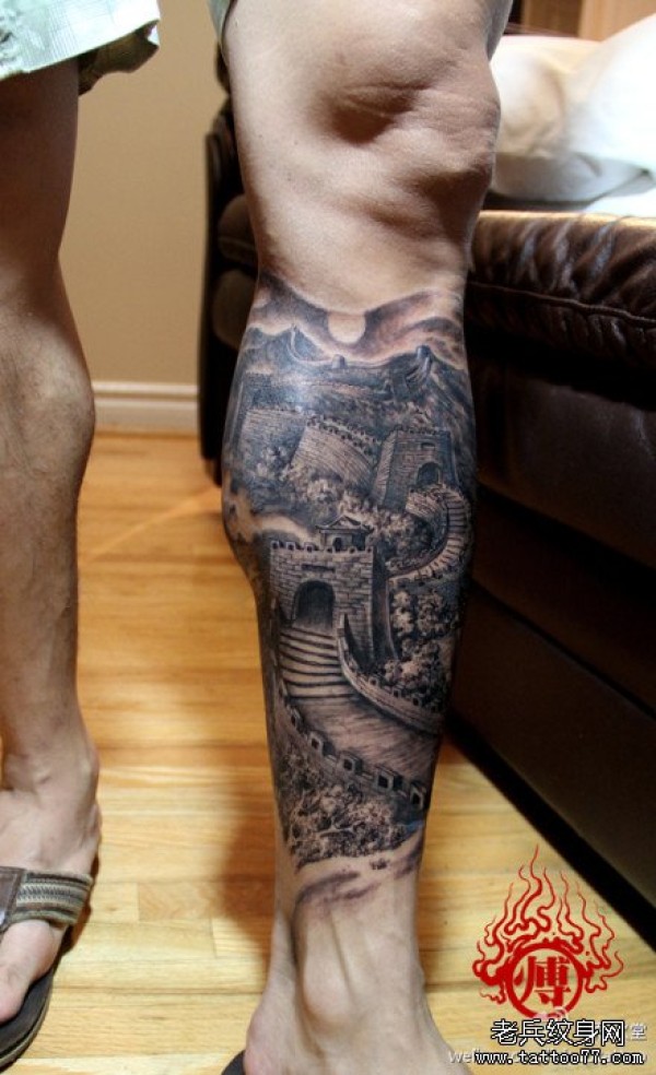 腿部潮流经典的万里长城纹身图案_腿部纹身图案大全_纹身图吧