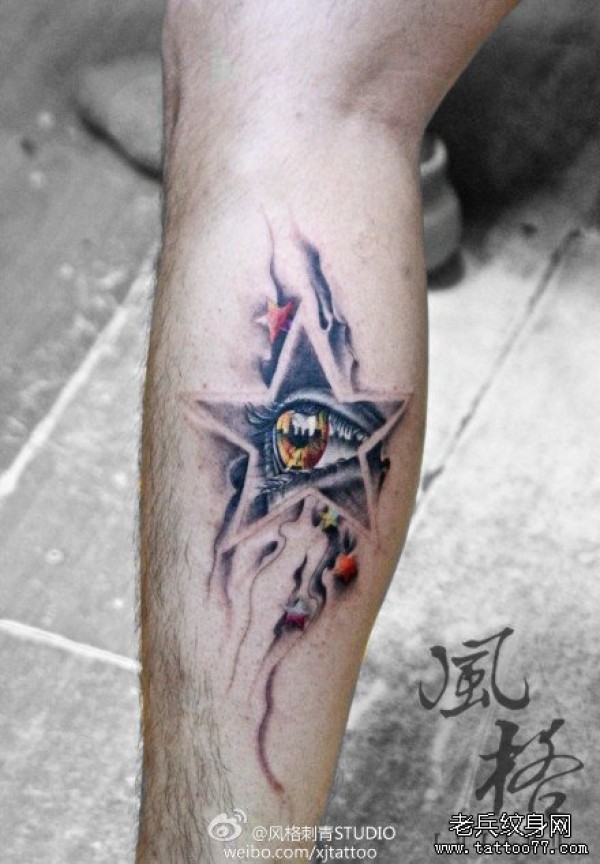 腿部漂亮超酷的五角星与眼睛纹身图案_腿部纹身图案大全_纹身图吧