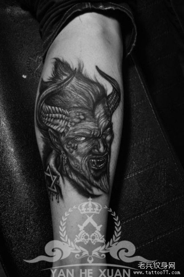 男人腿部经典超酷的恶魔撒旦纹身图案_腿部纹身图案大全_纹身图吧