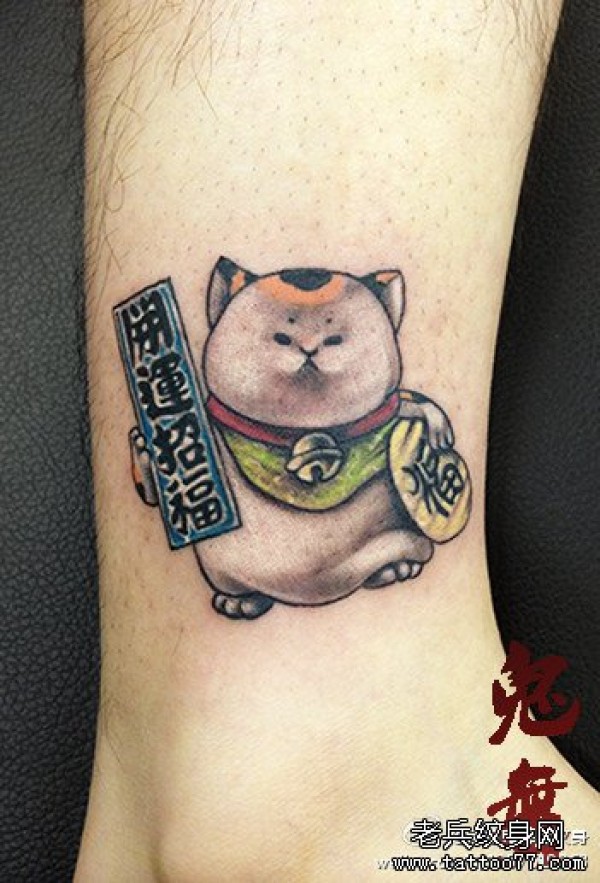 小腿一款可爱的胖胖的招财猫纹身图案_腿部纹身图案大全_纹身图吧