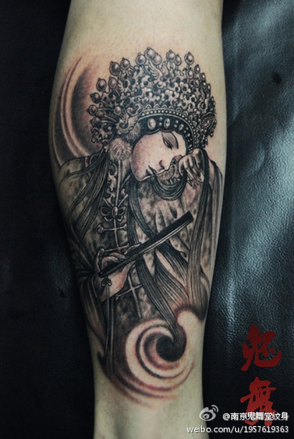 腿部漂亮潮流的美女花旦纹身图案_腿部纹身图案大全_纹身图吧