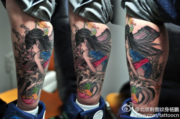 腿部彩色精灵纹身图_腿部纹身图案大全_纹身图吧