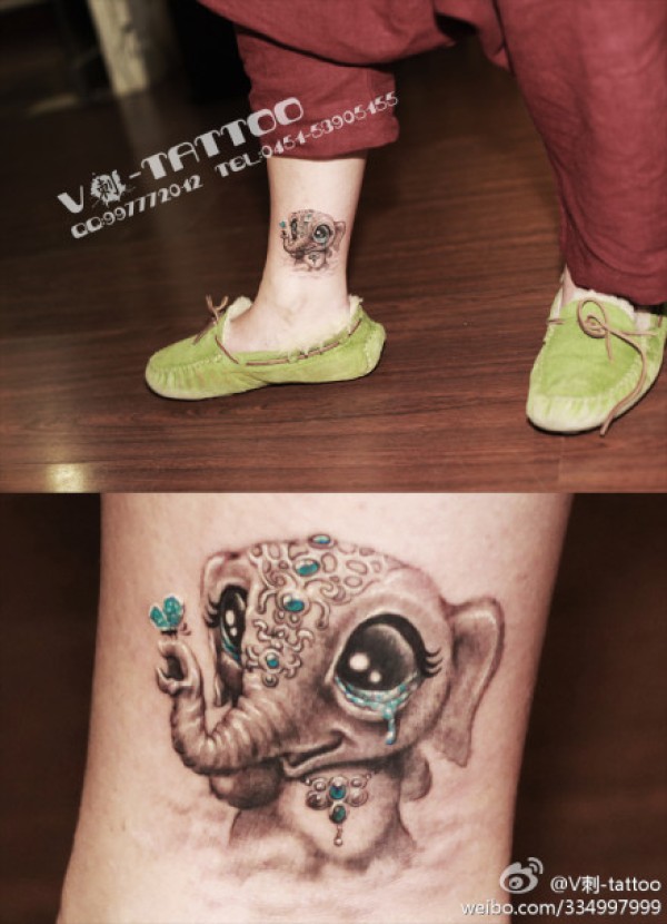 腿部可爱潮流的小象纹身图案_腿部纹身图案大全_纹身图吧