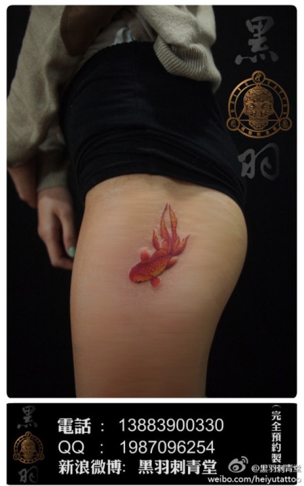 美女腿部潮流小巧的小金鱼纹身图案_腿部纹身图案大全_纹身图吧