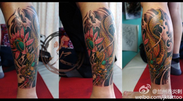腿部帅气超酷的鳌鱼纹身图案_腿部纹身图案大全_纹身图吧