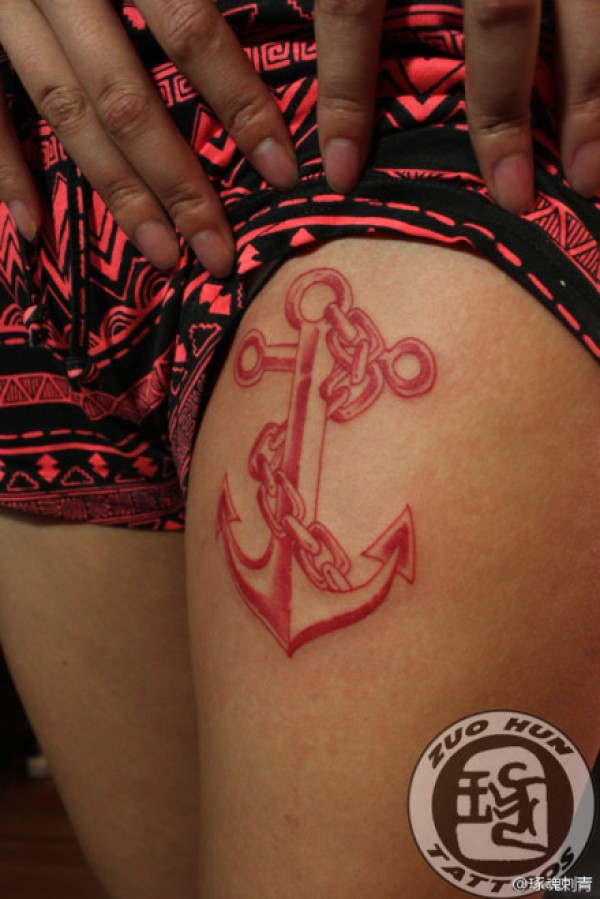 美女腿部潮流经典的船锚纹身图案_腿部纹身图案大全_纹身图吧
