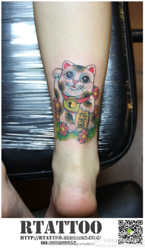 腿部可爱时尚的招财猫纹身图案_腿部纹身图案大全_纹身图吧