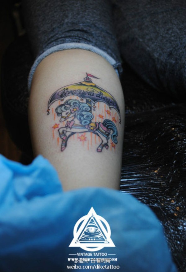 腿部潮流好看的旋转木马纹身图案_腿部纹身图案大全_纹身图吧