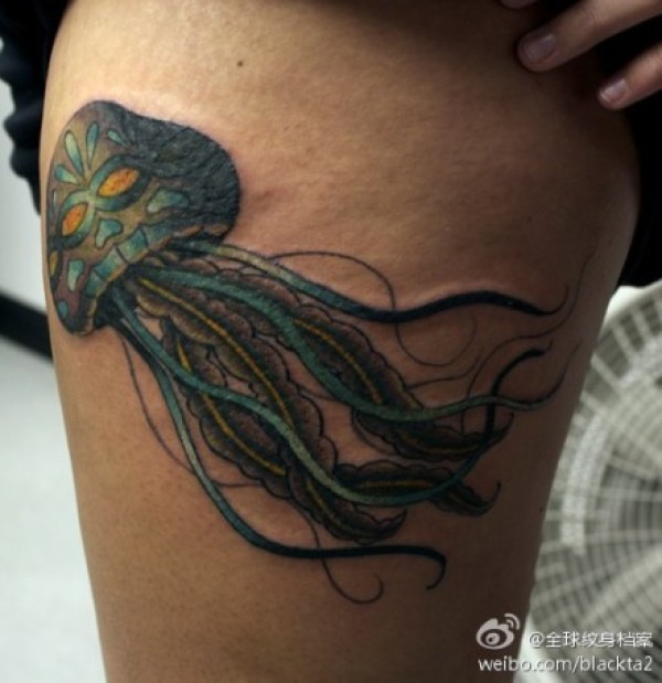 腿部唯美时尚的水母纹身图案_腿部纹身图案大全_纹身图吧