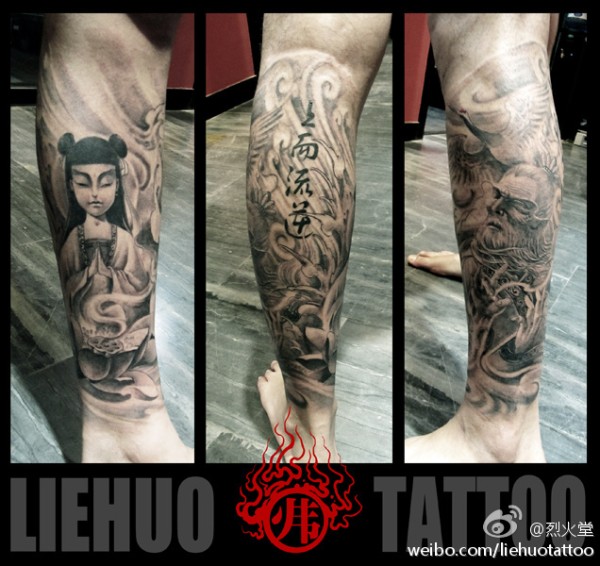 腿部帅气经典的哪吒与太乙真人纹身图案_腿部纹身图案大全_纹身图吧