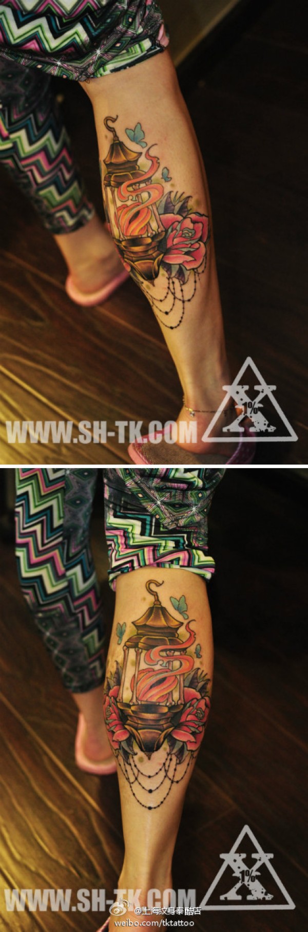 腿部时尚潮流的灯纹身图案_腿部纹身图案大全_纹身图吧