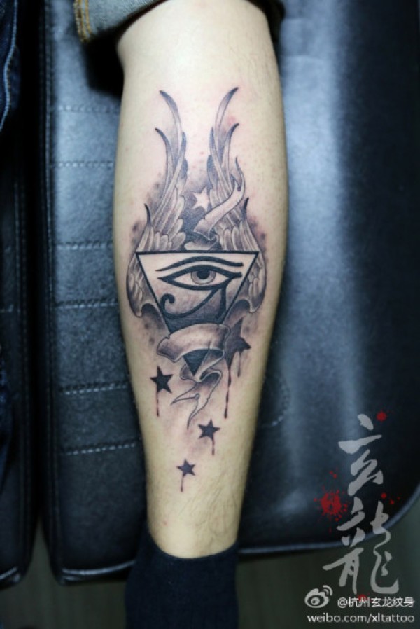 腿部潮流经典的黑灰荷鲁斯之眼纹身图案_腿部纹身图案大全_纹身图吧