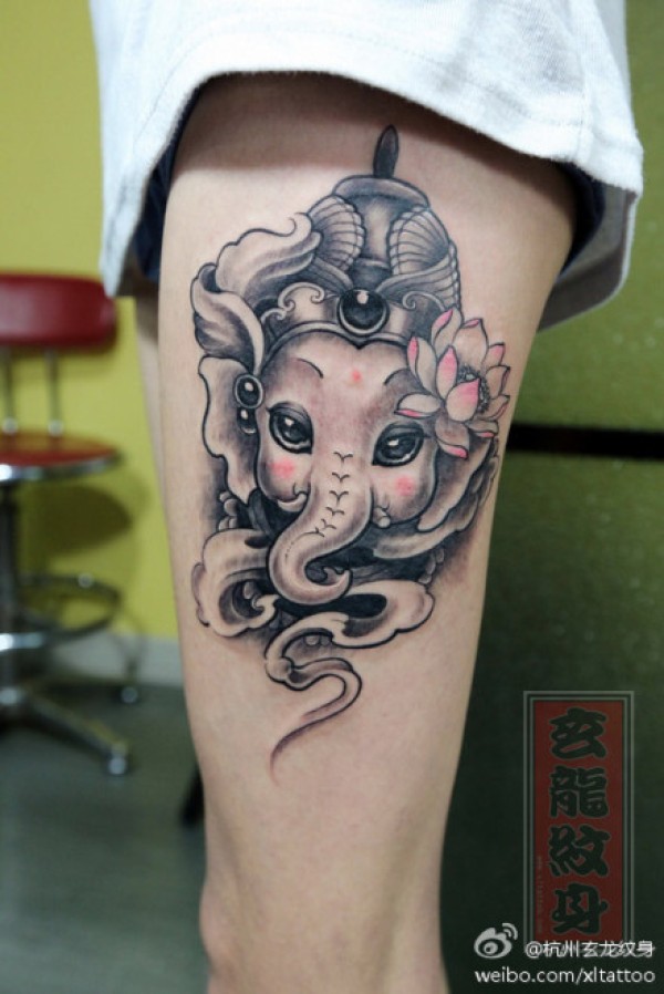 美女大腿可爱潮流的象神纹身图案_腿部纹身图案大全_纹身图吧
