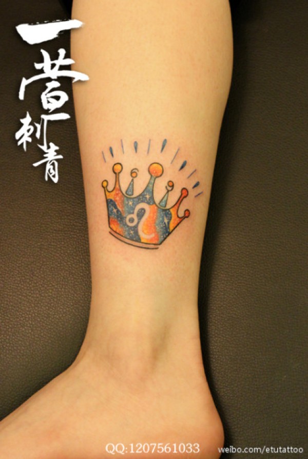 腿部时尚好看的星空皇冠狮子座符号纹身图案_腿部纹身图案大全_纹身图吧