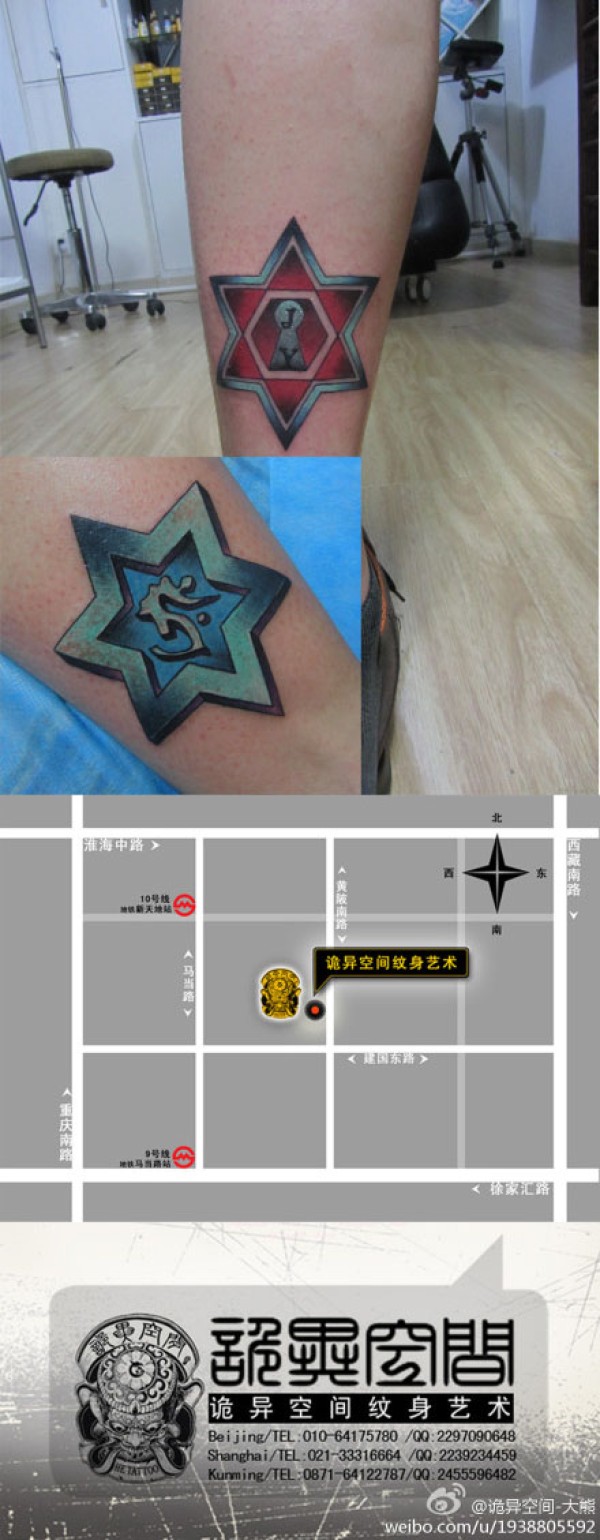 腿部时尚流行的六芒星纹身图案_腿部纹身图案大全_纹身图吧